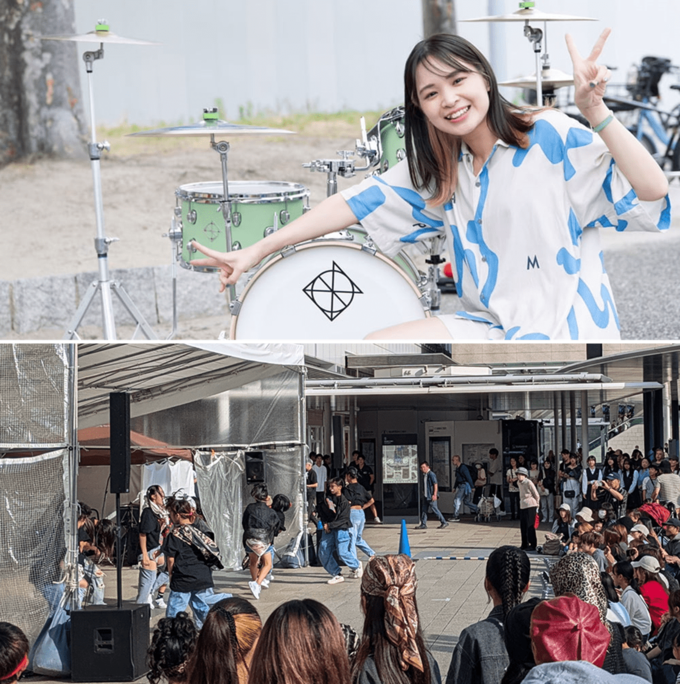 ストリートドラマー・リエイ、パフォまちライセンス登録アーティスト、キッズダンス、富山市内中高校吹奏楽部(15日)、働く車ブース、キッチンカーなど。