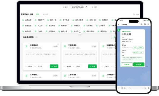建設・工事業向けLINE完結型現場管理アプリGENLY公式サイト:https://lp.genly.jp/