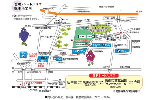 1991年からは、生産者と消費者が触れ合うことができるイベントとして、「巨峰の王国まつり」が開催されています。「巨峰の王国まつり」では、生産者が丹精込めて栽培した巨峰、シャインマスカット、ナガノパープル等の様々な種類のぶどうが販売されます。
