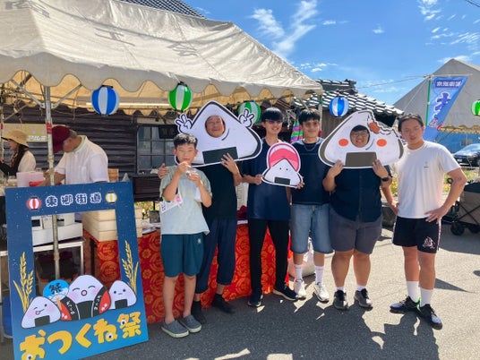 福井市東郷地区のお祭り「おつくね祭」で学生たちが出店。おつくねとは、福井市東郷地区の方言で「おにぎり」を意味する