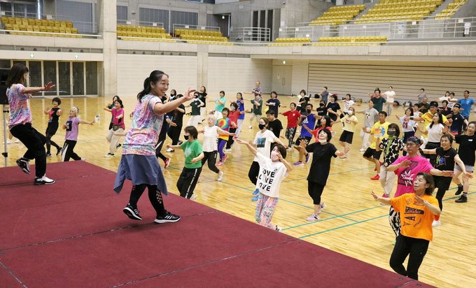 ドームで毎日開催しているフィットネスプログラムは年齢や参加人数に制限がある。より幅広い人に楽しんでもらおうと施設を管理運営する市スポーツ協会が毎年、規模を大きくして開いているイベントの一環。