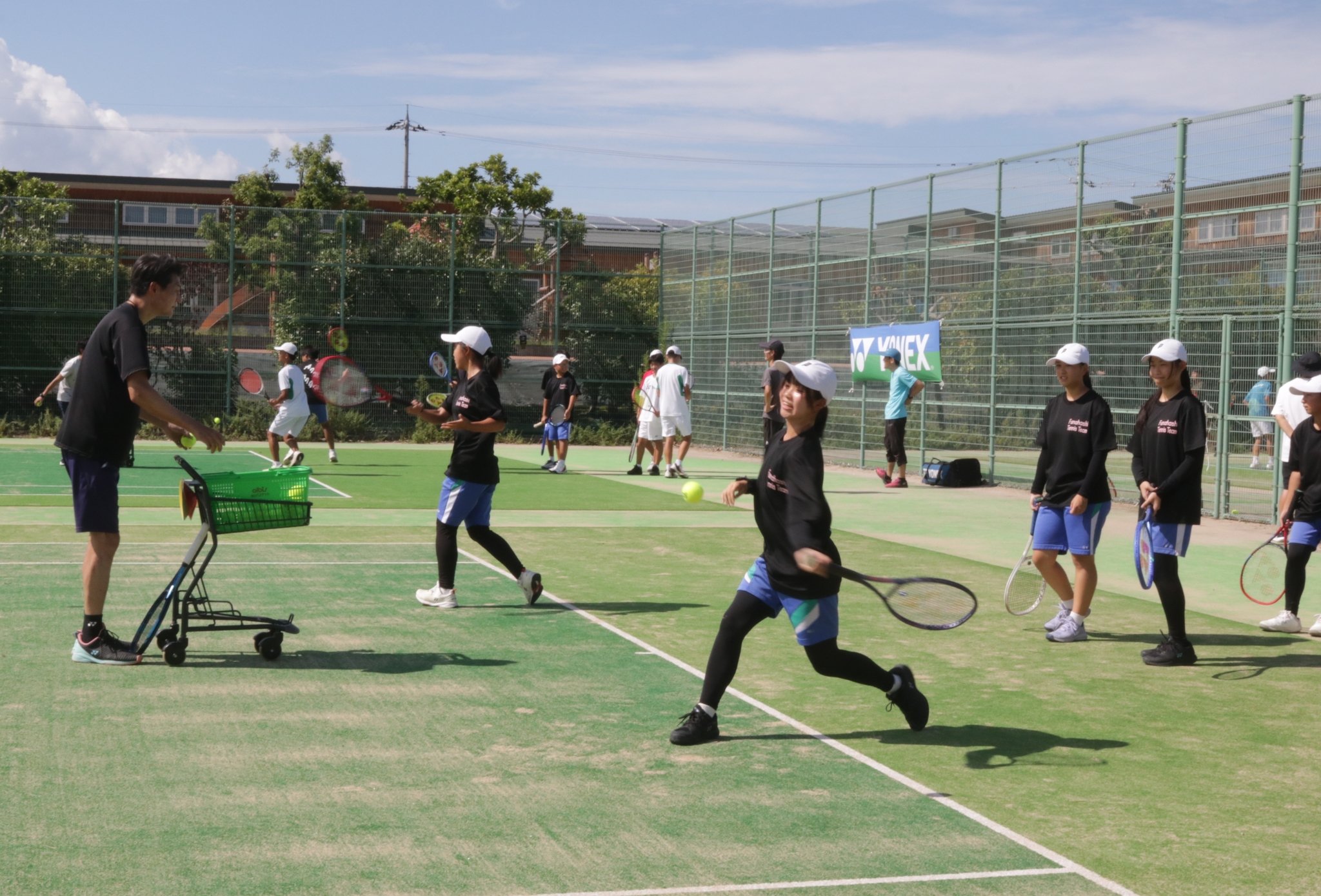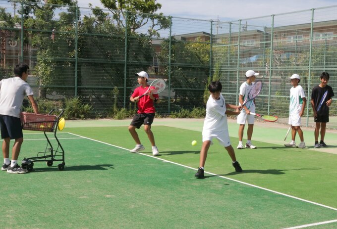 舟橋村の中学生テニスクラブ「FJテニス」は15日、ラケットの試打会を舟橋村営テニスコートで開き、クラブ所属の中学生や地元の高校生ら約20人が参加した。