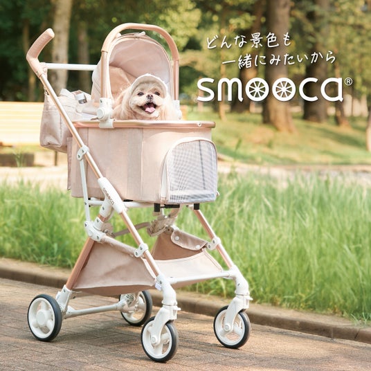 当社オリジナルペットカートブランド「スムーカ」は、スムーズで快適な移動をコンセプトに自社開発を行い、サイズ・容量・機能面での改良を重ねてきました。ペットが安心して過ごせる“お家のような空間”を外出先でも実現することを目指し、ペットの不安やストレスを和らげつつ、ペットとオーナーが同じ目線で景色を楽しめる移動手段として誕生しました。移動時間そのものを「心地よい思い出」に変えていきます。