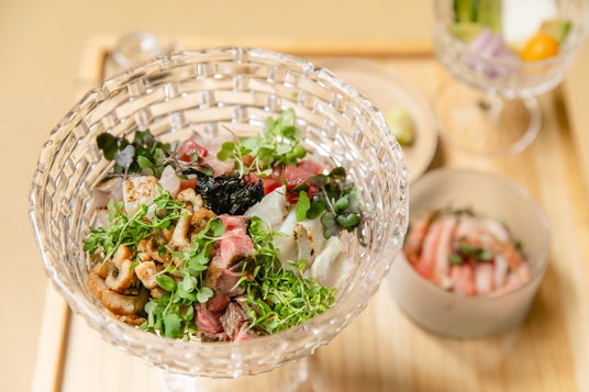 ■TILE (タイル)2021年3月にオープンした【 TILE (タイル) 】は、“伝統の再定義”をコンセプトとした、全く新しい価値観の「食」を楽しめる創作海鮮丼専門店。店名にもなっている通り、タイル型にカットされた食べやすくお箸を使わなくても良い約30種類の魚介類を中心としたネタと、薬味として位置付けているマイクログリーンを自由にレイアウトし、金沢薬味海鮮丼を美しい宝石箱に落とし込むという体験型レストランです。築110年の町屋を改装し、不特定多数の人を集めるのではない、クローズドで特別な空間を演出。2022年から2024年まで、世界最大の旅行プラットフォーム「トリップアドバイザー」より、優れたサービスを一貫して提供する施設に贈られる「トラベラーズチョイスアワード」を3年連続で受賞中。