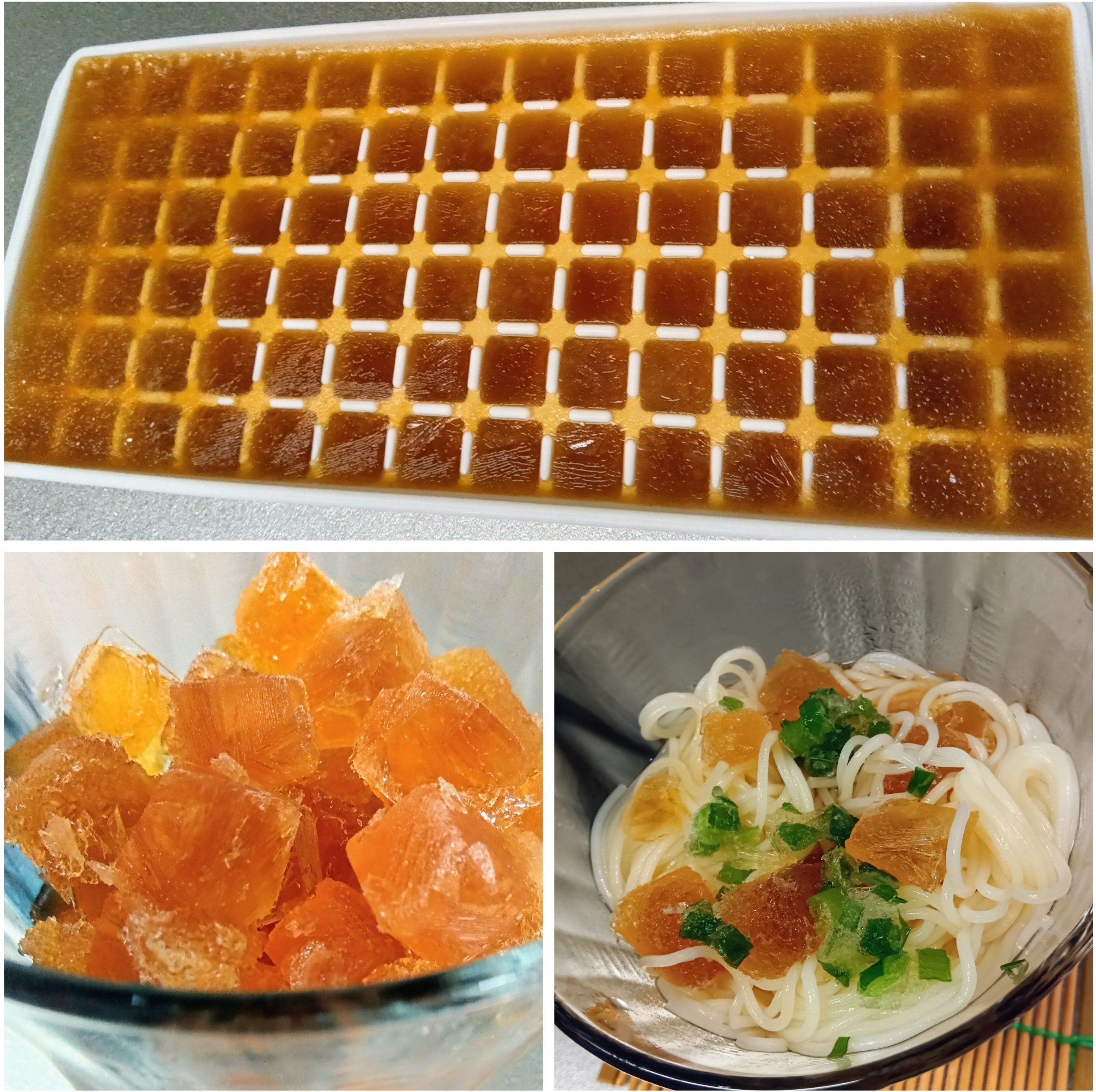 仕切りの細かい製氷皿に、余っためんつゆを入れて冷凍庫へ。