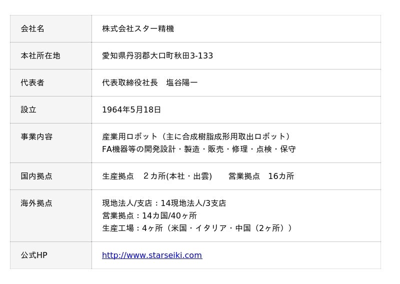 株式会社スター精機(本社:愛知県丹羽郡大口町秋田3-133、代表取締役社長:塩谷陽一)は、