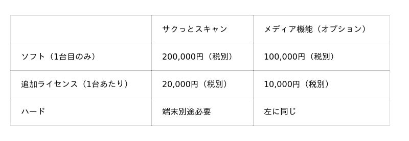 ソフトウェアは初回1台20万円、追加ライセンスは1台あたり2万円。