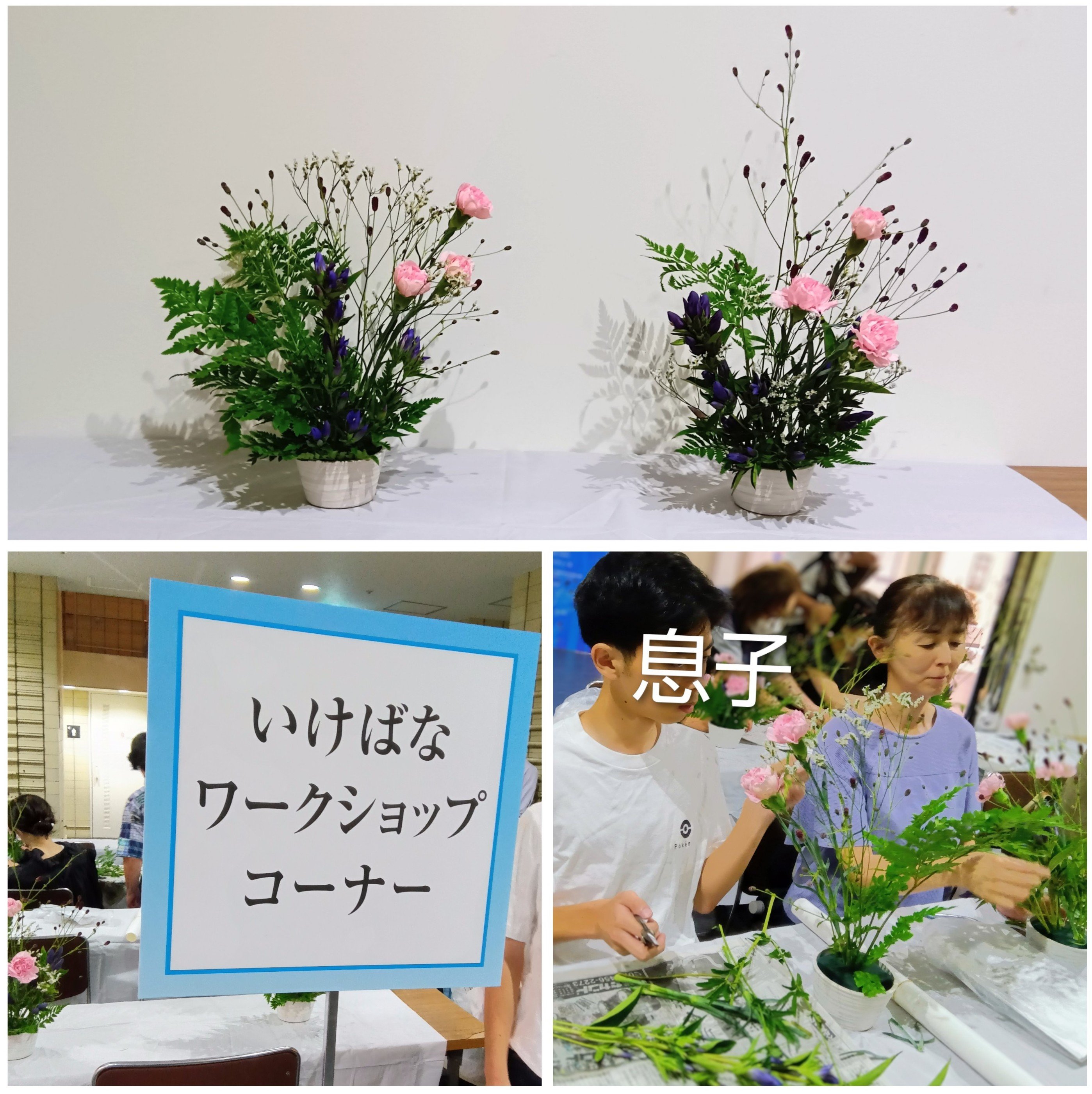 今年もいけばなワークショップと茶道体験コーナーがあり、息子と参加しました。