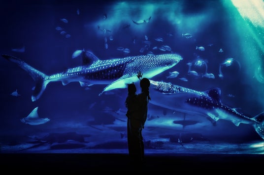 撮影場所は、石川県にある、大好きなのとじま水族館。大きな水槽を悠々と泳ぐ2頭のジンベエザメ「ハチベエ」と「ハク」。その雄大な姿に釘付けになっていた妻と娘。ガラス越しに重なった家族のシルエットと、雄大な生命の輝き。その一瞬を切り取った、家族の宝物です。