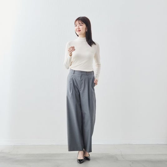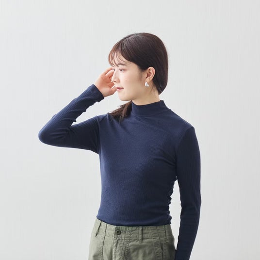 絶妙な高さのモックネックは、首元をほっそりと見せながら、重ね着のインナーとしても抜群の相性を発揮します。