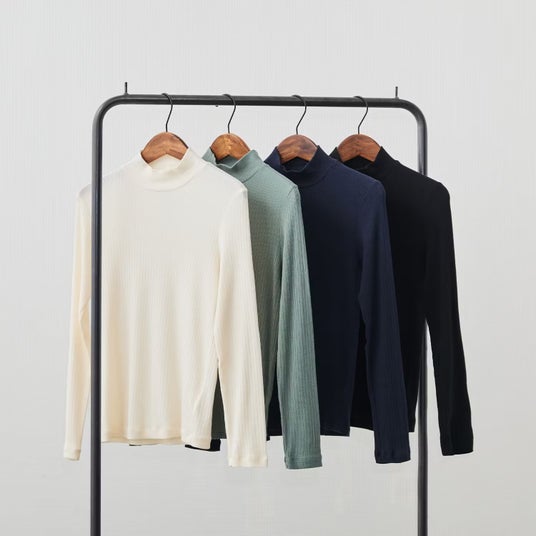 ジャケットやカーディガンのインナーに、季節の変わり目や寒暖差のある日々にも頼れる存在。