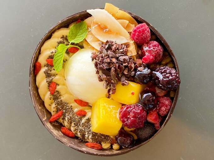 他のメニューでは、アサイボウルが人気。栄養価の高いスーパーフードとして知られるアサイのピューレにナッツやベリー、米粉入りグラノラなどが盛りつけられ、ビジュアルも美しい“映えメニュー”だ。