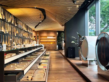 こちらの創作意欲もかき立てられ、海岸通りの画材専門店「PIGMENT TOKYO」へ。壁一面を埋め尽くす約4500色の顔料に圧倒された。画材の相談などに応じ制作をサポート、初心者向けのワークショップも人気という。同店を運営する寺田倉庫の高木佑香奈さんは「美術館やギャラリーもある天王洲には、作品制作からその保管・移送、発表までできるアートのエコシステムがある」と話す。