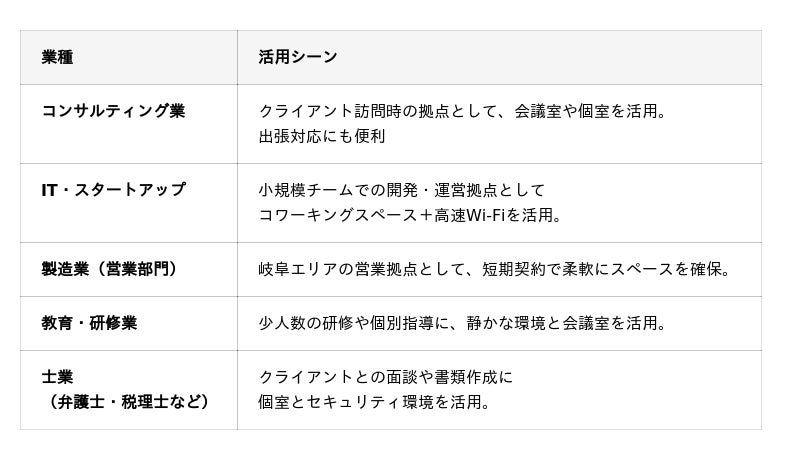 オープンオフィス岐阜駅前は、以下のような利用者に特におすすめです。