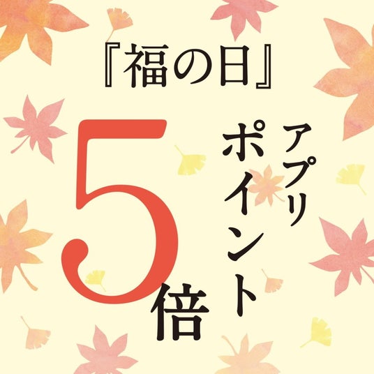 毎月ご好評をいただいているアプリポイントアップ企画「福の日」を、10月はポイント5倍で開催します。貯まったポイントは「1ポイント=1円」として、次回のお買い物にご利用いただけます。