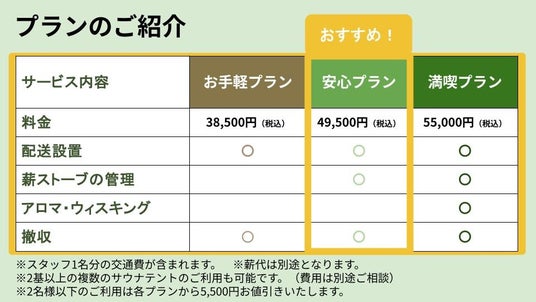 サヴォッタ×信州サウナ同盟 フィンランド式サウナテント出張レンタルサービス 料金プラン