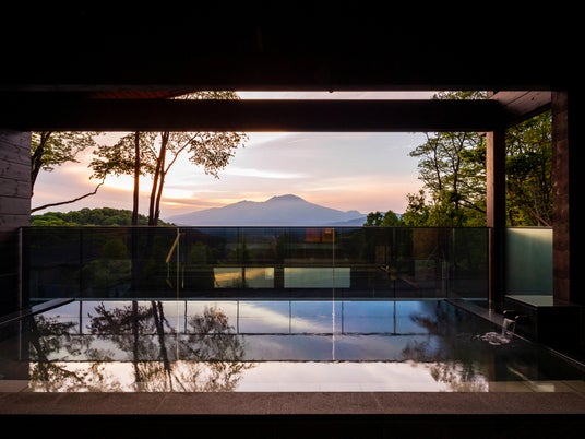 浅間山の絶景が広がる温泉棟「Breeze in Plateau」。