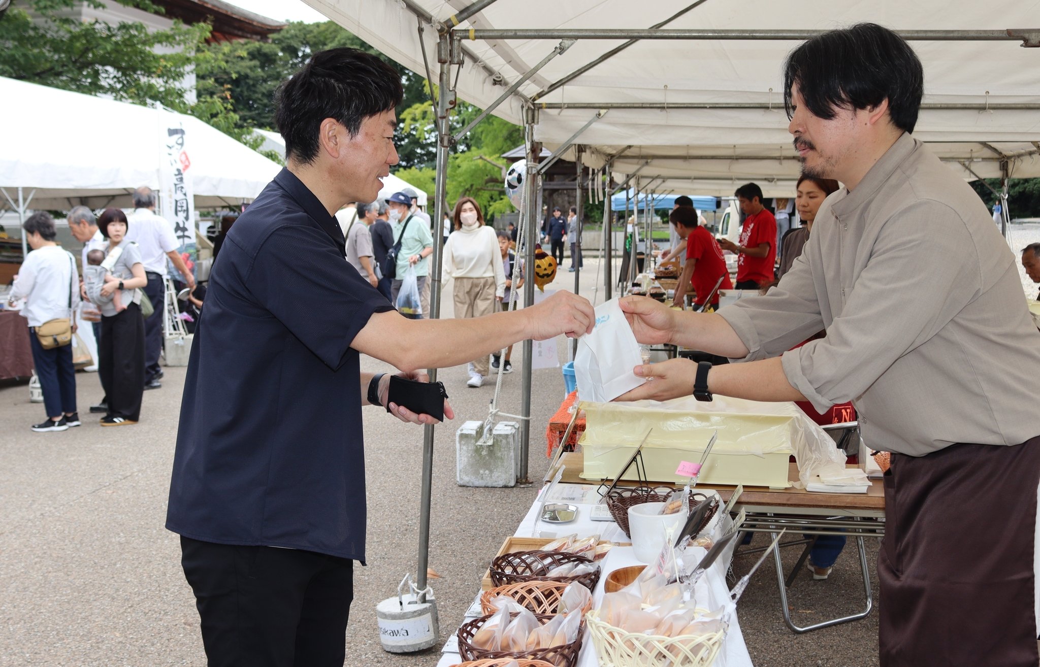 マルシェは地元商店など計15店が出店。弁当やラーメン、スイーツなど飲食の販売やワークショップもあり、多くの人でにぎわった。