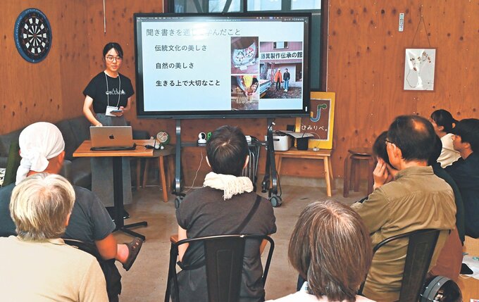 富山県のJR氷見駅近くのコミュニティースペース「ひみりべ。」は4日、「聞き書き甲子園報告会in氷見」を開いた。酒造り、藤箕(ふじみ)作りなど氷見の文化を受け継ぐ名人から話を聞いた地元と首都圏の高校生4人が、取材から学び取った氷見の風土や人の良さ、生きる上で大切にすべきことなどを発表した。取材を受けた名人をはじめ住民らが耳を傾け、報告の感想などを語り合って生徒と交流した。