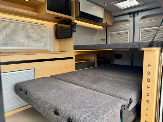イタリア語で「喜び」を意味するその名の通り、家族全員が笑顔になれる空間を追求しました。広々とした居住空間を最大限に活かし、5名乗車・5名就寝を実現。トイファクトリーのデュカト史上最大のベッド面積を誇ります。