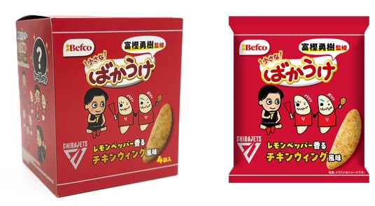 本商品は、富樫選手の好物“チキンウィング”をイメージし、爽やかなレモンペッパー風味に仕上げた特別な「ばかうけ」です。さらに、全5種(うち1種はシークレット)のオリジナルステッカーが1枚ランダムで封入されており、食べて・集めて楽しめる限定商品となっています。