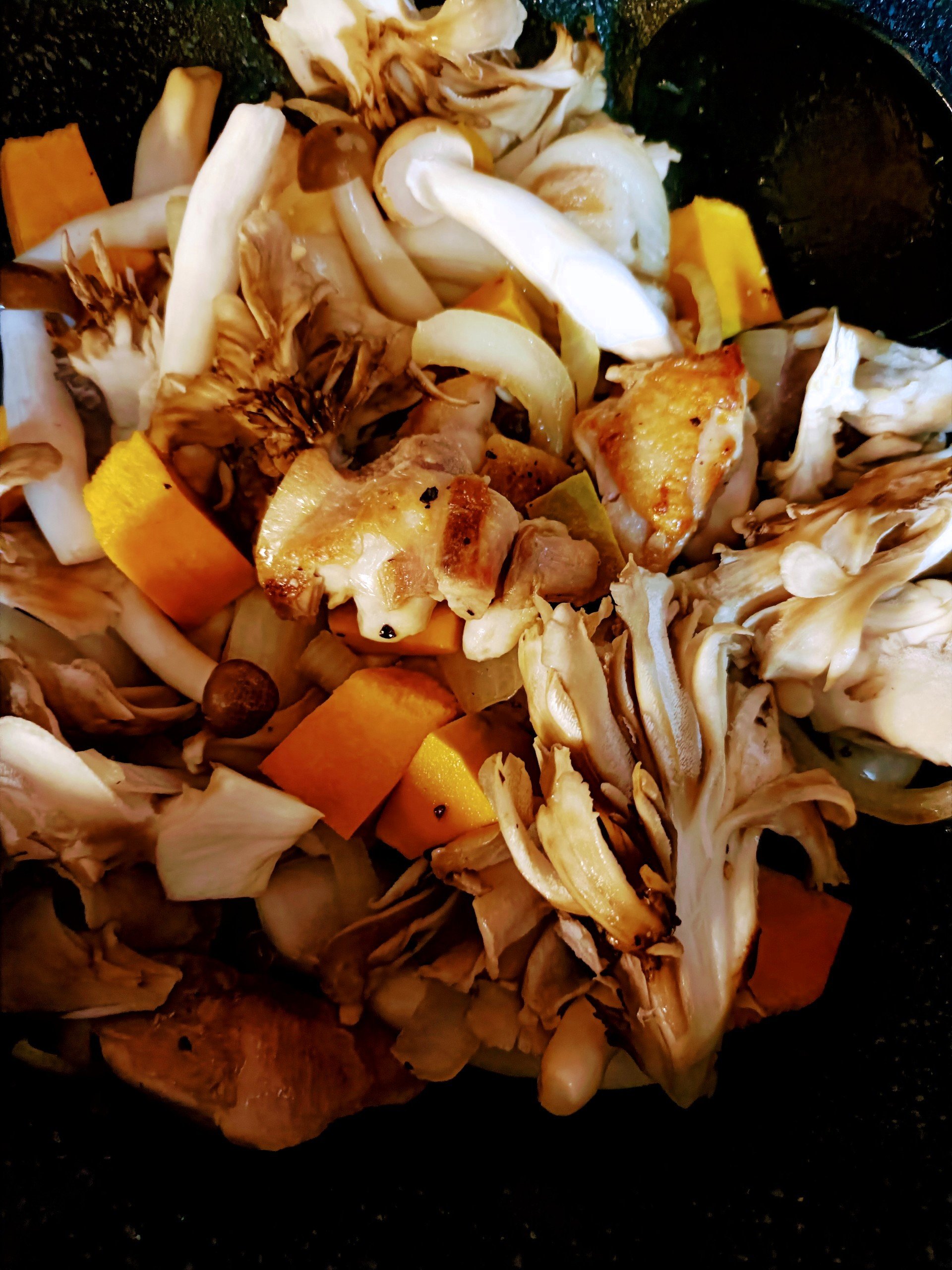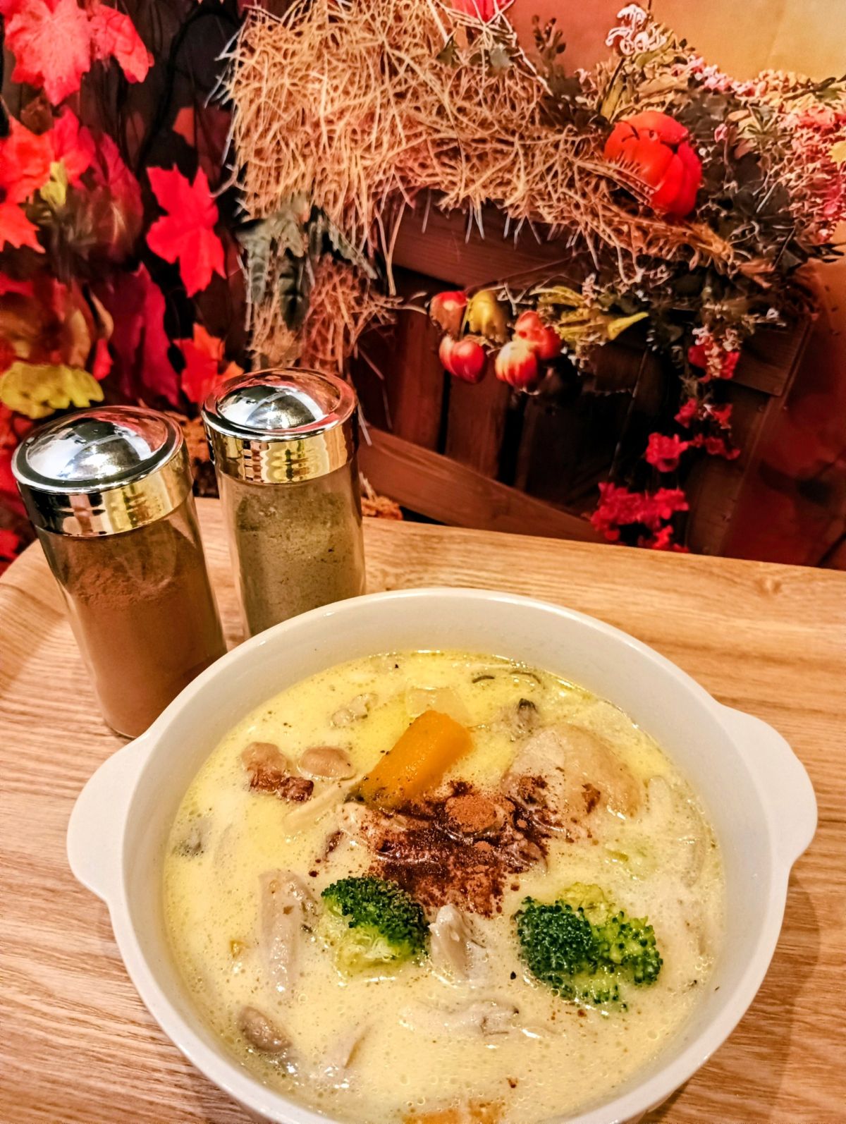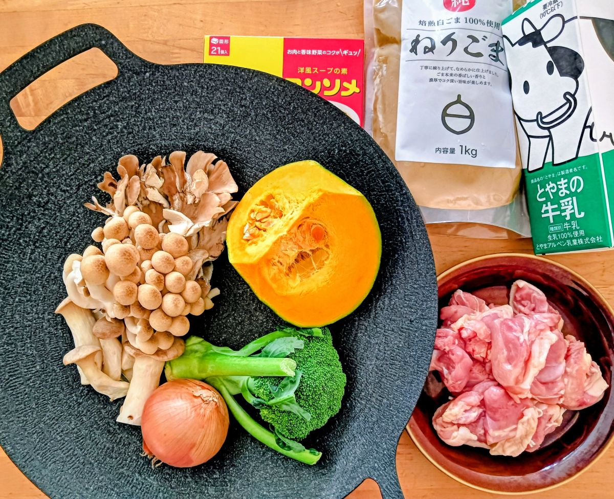 今回は白ねりごまをたっぷり使って、濃厚なのに小麦粉不使用の糖質オフシチューを作ります。かぼちゃやきのこ、ブロッコリーなどの秋野菜を加えて、彩りも栄養も秋らしく仕上げました。