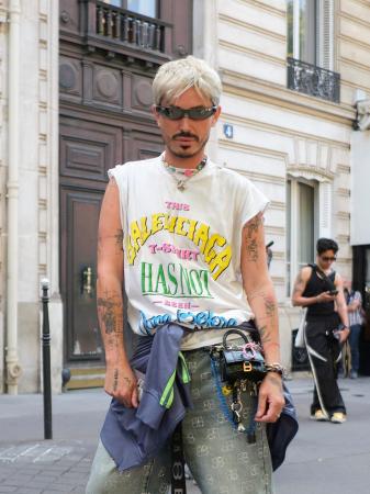 では、会場周辺のファッションは、どんな兆候があったか。特筆すべきは、メンズのアクセサリーの過剰具合。ネックレスやブレスレットなどをジャラジャラさせた男性が目立った! 大人ムッシュも主張強めのアクセサリーをチョイスしているのが印象的でした。