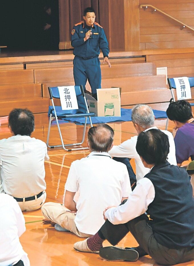 講演会は池多地区ふるさとづくり推進協議会が有事の際の組織力、行動力の強化を目的に昨年から開催。今回は住民約130人が参加した。