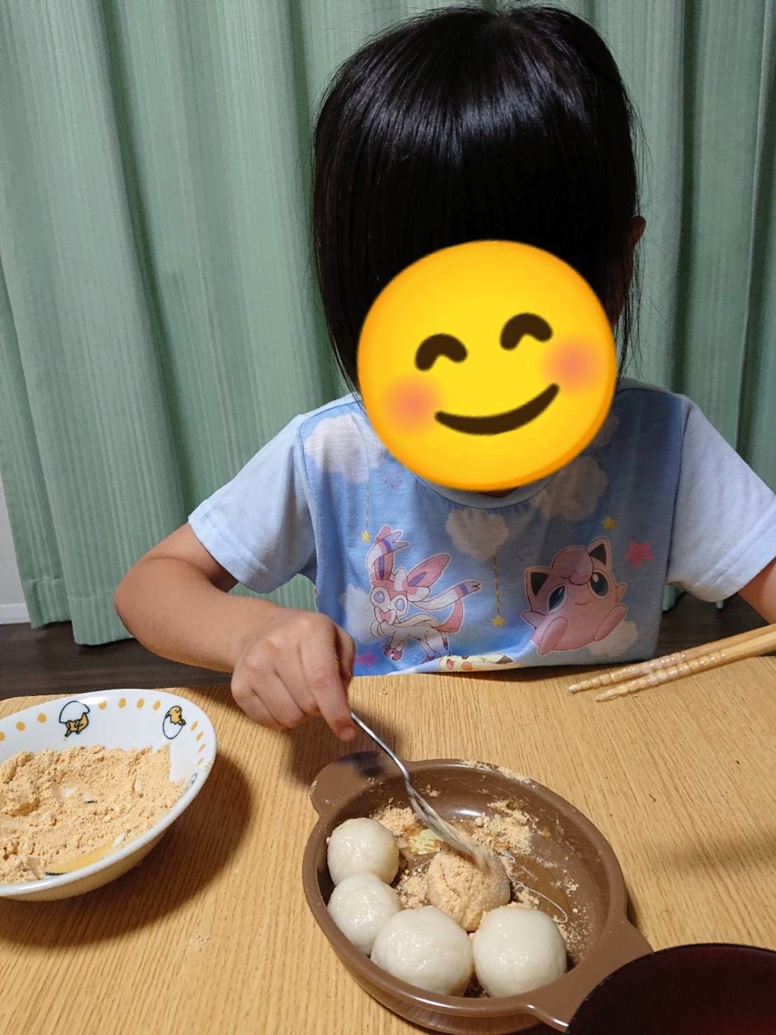 完成したら、きな粉やあんこなど好きなものをつけていただきます♪