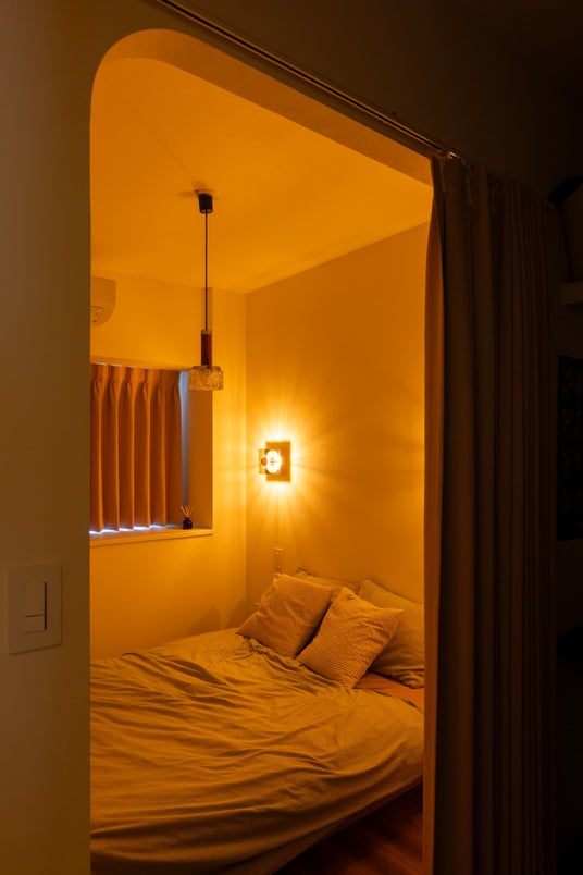 赤みのある木目やアクセントカラーのオレンジを取り入れ、洗練された印象と温かみを両立。家具や照明との調和により、可愛らしさと落ち着きを兼ね備えた住まいに仕上げました。