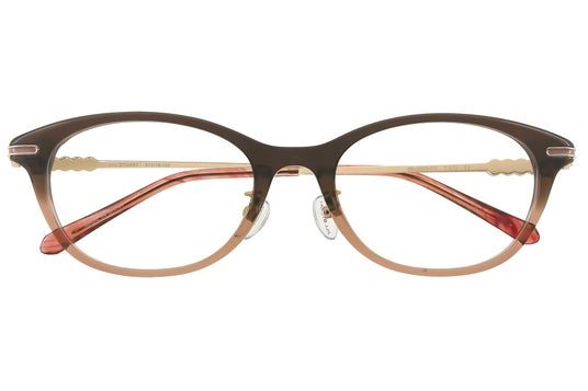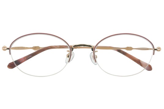 透け感のあるアセテートが軽やかに輝き、メタルパーツの上品さと相まって視線を惹きつけるアイウェア。日常にそっと華やぎを添え、女性らしい柔らかさと上品さを際立たせます。