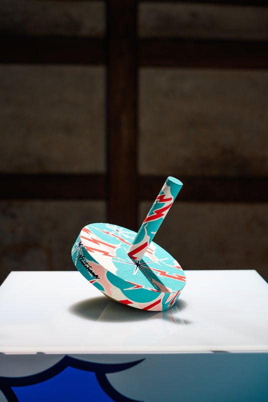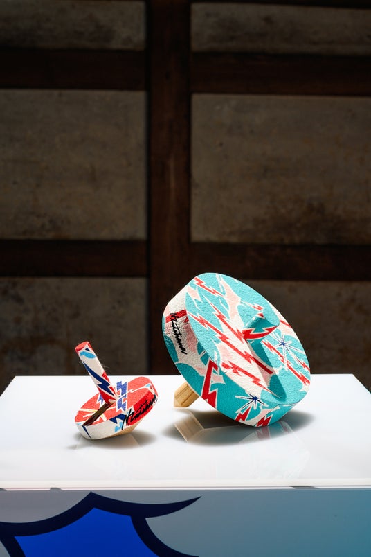 富山市八尾町の型染め和紙工房「桂樹舎」とのコラボレーションにより実現した作品。伝統工芸「井波彫刻」で知られる南砺市井波の職人が独楽の木地を制作し、加飾として桂樹舎の制作した「型染め和紙」が活用された。舘鼻則孝のアイコンでもある「雷雲」の絵図が手染めによって手揉み和紙に再現されている。