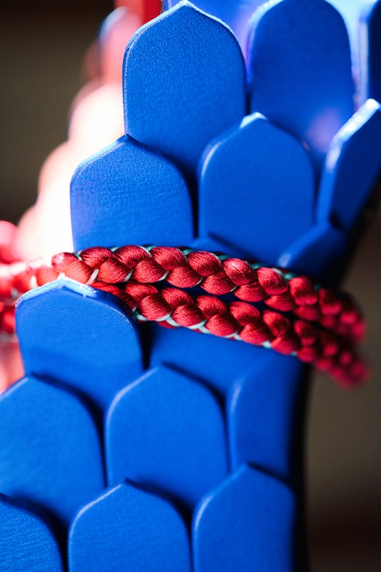 Dyed cowhide, Japanese braided cord, metal fastener