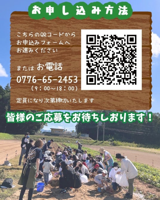 ・ 場所:道の駅 蓮如の里あわら 特別さつまいも畑(あわら市山十楽/詳細は申込時にご案内)