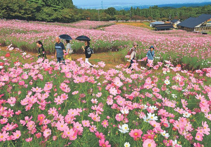 ゲレンデ一面に彩り 砺波・夢の平スキー場、コスモスウオッチング 2025年10月8日 05:00 社会・話題 ゲレンデ一面を彩るコスモス=となみ夢の平スキー場 8日は二十四節気の寒露。草木に冷たい露が降り、秋が深まるころとされる。富山県砺波市五谷のとなみ夢の平スキー場では開催中の「2025となみ夢の平コスモスウオッチング」が満開間近となり、7日は来場者がゲレンデ一面に咲き誇る壮観な光景に見入っていた。 この機能は会員限定です。 お気に入りの記事を保存し、マイページで読むことができます。 ログイン 会員登録はこちら