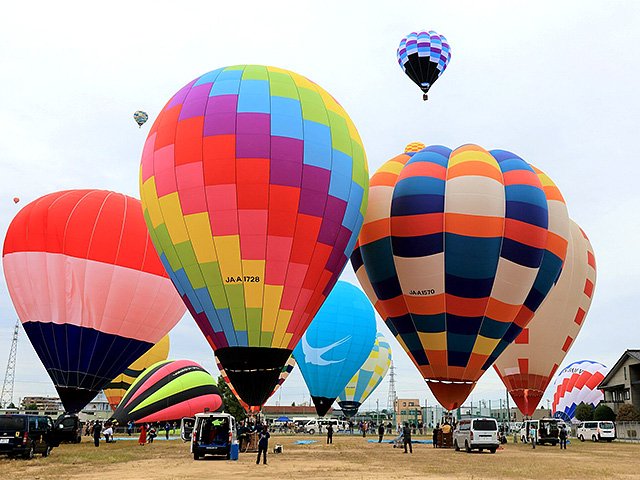 「スカイフェスとなみ2025バルーン大会」は11日、富山県の砺波市中村グラウンドで始まり、カラフルな熱気球が砺波平野の秋空を彩った。13日まで。