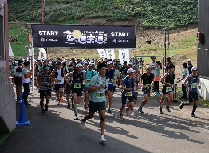 富山県南砺市の浄土真宗ゆかりの山岳古道、道宗道(どうしゅうみち)を駆ける「世界遺産五箇山・道宗道トレイル」が12日、同市のたいらスキー場を発着点に開かれた。2019年まで開かれていた「世界遺産五箇山・道宗道トレイルラン」の後継イベントとして6年ぶりに開催。27都府県から約500人が出場し、澄んだ秋空の下、険しい山道に挑んだ。