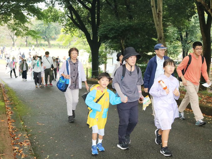 富山市の呉羽丘陵一帯でウオーキングを楽しむ「呉羽丘陵ウオーク」が13日、同市ファミリーパークを発着点に開かれた。小雨が時折降る空模様の下、参加者約250人は秋の深まりを感じさせる里山の景色を堪能しながらゴールを目指した。