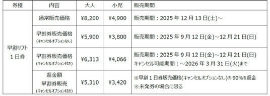 2.おトクな早割リフト券・早割シーズン券の販売開始