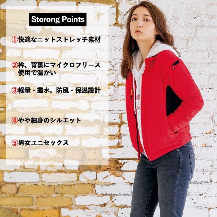 - 表地には、軽量で防風・耐水・保温性に優れた高密度ポリエステル素材を採用