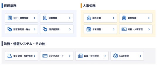 総務・経理・労務などのクラウドツールにつき、顧客企業の課題に合わせ包括的な導入・運用支援を行います。特に当社がパートナーとして登録している「マネーフォワード」を軸とした会計・給与・勤怠・経費清算等の導入・運用支援については、当社だけでなく社外専門家や公認会計士とも連携をしながら進めていくため、業務の生産性向上という点で非常に大きな効果が見込まれます。マネーフォワード以外にも、顧客企業がすでに使用しているクラウドツールを軸としながら、最適な連携ツールの導入・運用支援を行います。