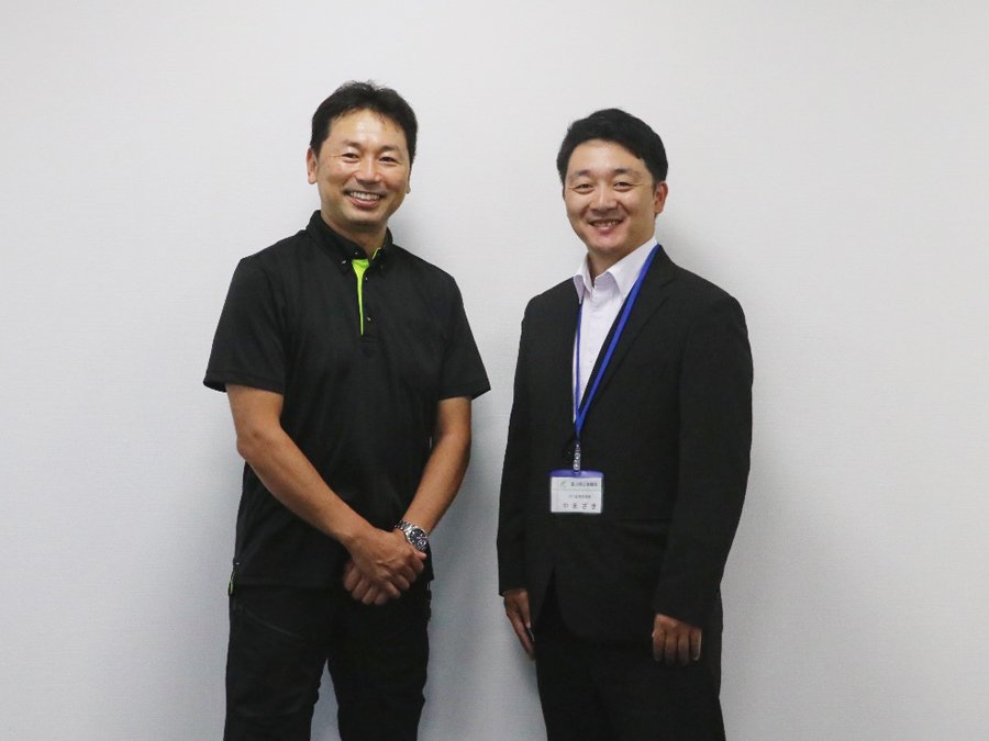 新村さんと富山商工会議所の山崎真太郎さん(右)