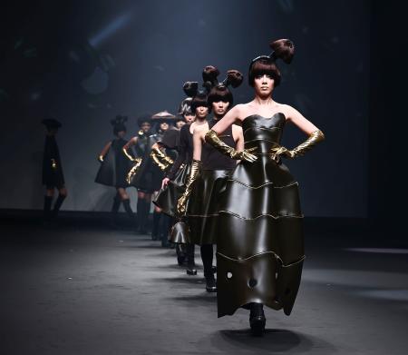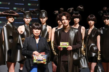 ファッションデザイナーのコシノジュンコと明治のチョコレート菓子「きのこの山」がタッグを組んだファッションショー「きのコレ」が東京都内で開かれた。同商品の発売50周年を記念した。半世紀以上活躍するコシノだが「きのこをイメージしたのは初めてです」と話した。