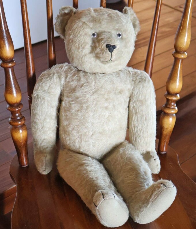 ちょっと怖い。クマのぬいぐるみと目が合った瞬間、そう感じてしまった。フランスの古いテディベア(9790円)。瞳はどこかうつろで、一見して愛らしいとは言い難いが不思議と見入ってしまう。体つきががっしりとしていて今にも歩き出しそうだ。目にガラスが用いられていることから1900年代前半のものとみられるが、詳細は不明。毛並みが所々薄くなったり色味がくすんだりしているのは、前の持ち主がたくさんなでてかわいがっていた証しだろうか。後頭部には小さな縫い目があり、補修した跡に見える。家族に直してもらったのかな、などと想像すると、いとおしくなる。