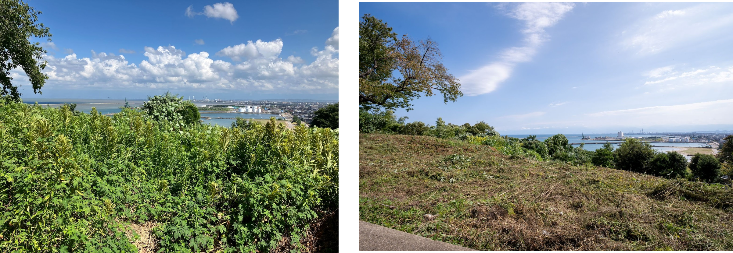 伐採前 伐採後(富山湾や立山連峰が見えるように)