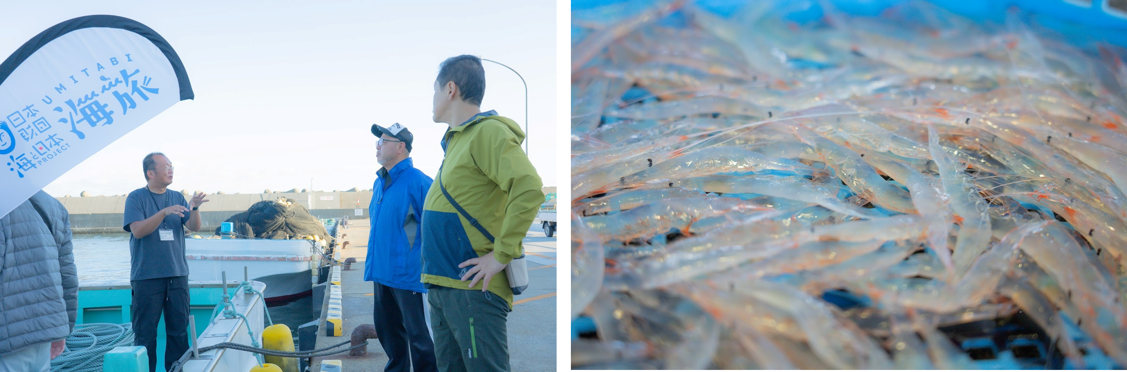 今回の舞台・富山県射水市新湊地区は、内川を中心に、漁業や食文化とともに独特の暮らしを育んできたまちです。モニターツアーでは、白えび漁や競りの現場、町並み散策、食体験を通じて「海とともにある日常の豊かさ」に触れることを目的としました。