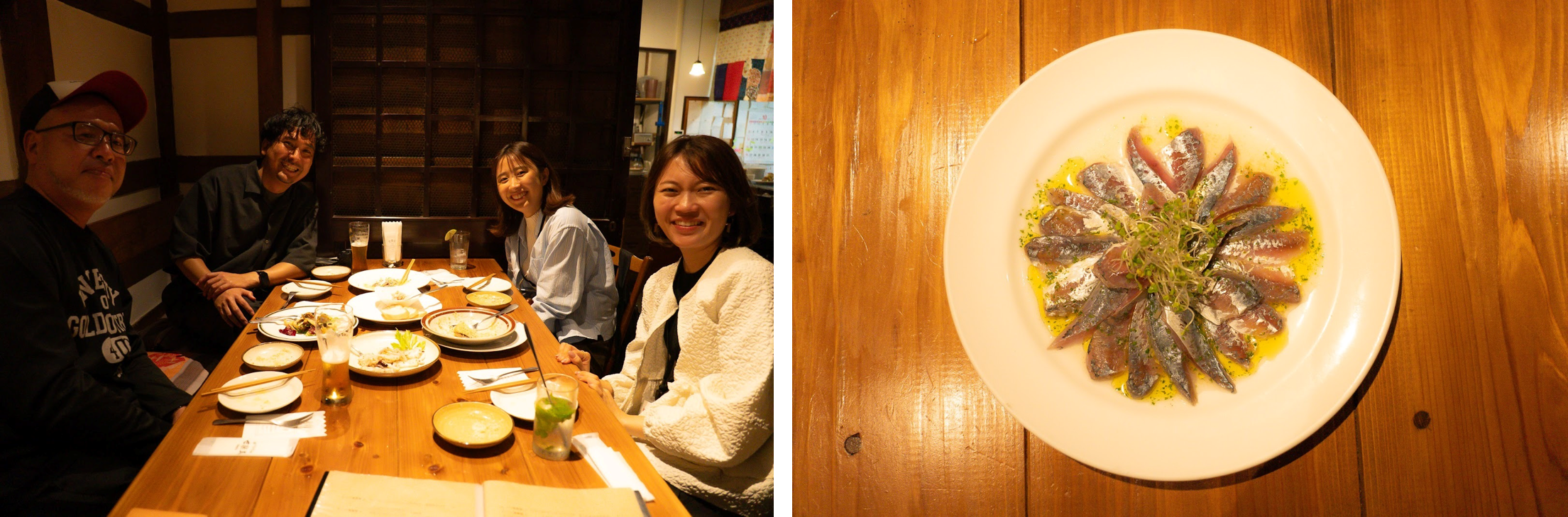 おいしい料理を囲みながら、空間デザイナーの明石さんや漁師の野口さんとも自然に会話が弾み、夜はあっという間に更けていきました。