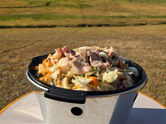 楢木こうじ店様の麹にて味付けをしており、バケツ鍋の上でお召し上がりいただきます。その他焼肉各種、ドリンクもご準備しております。
