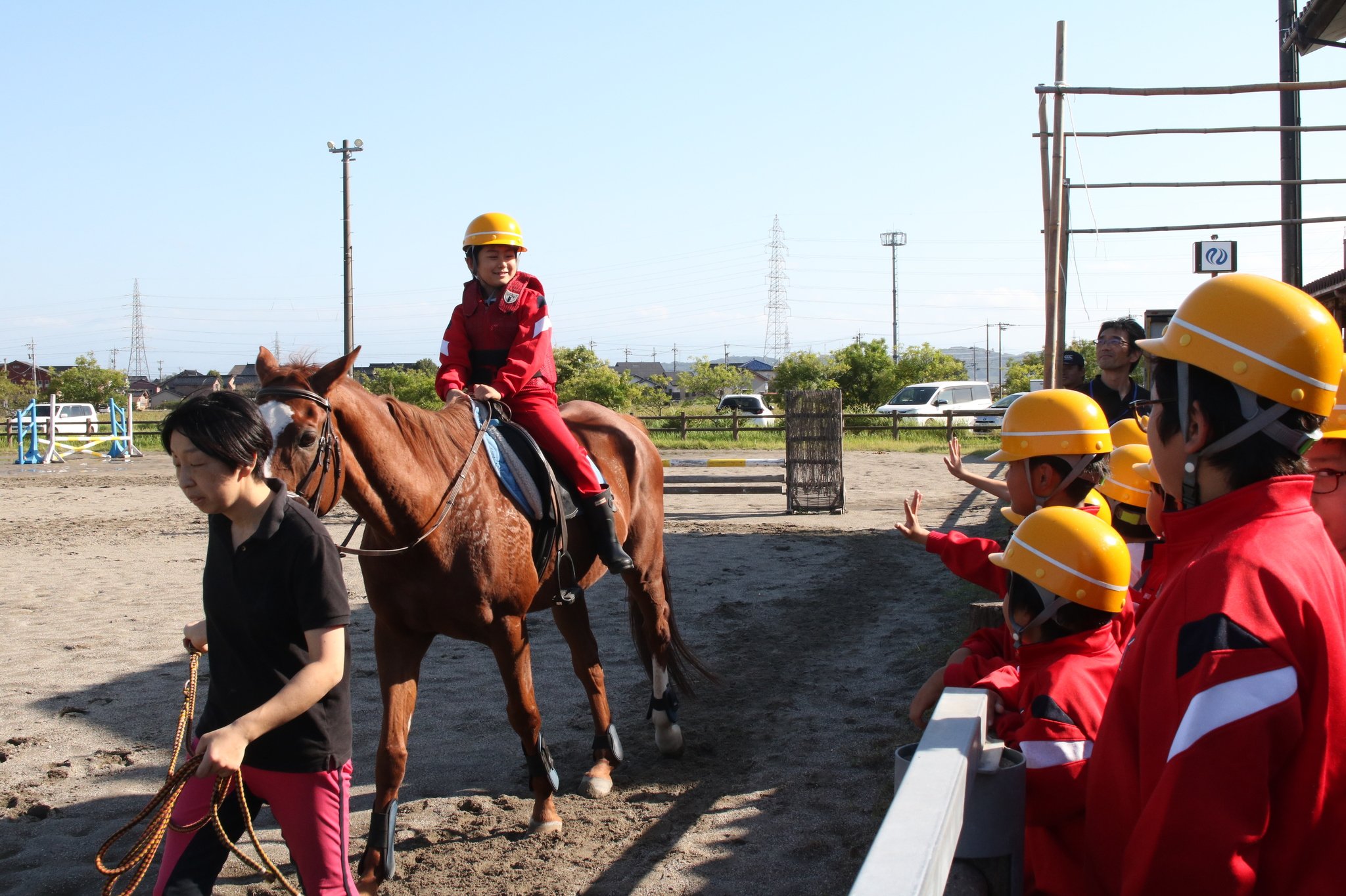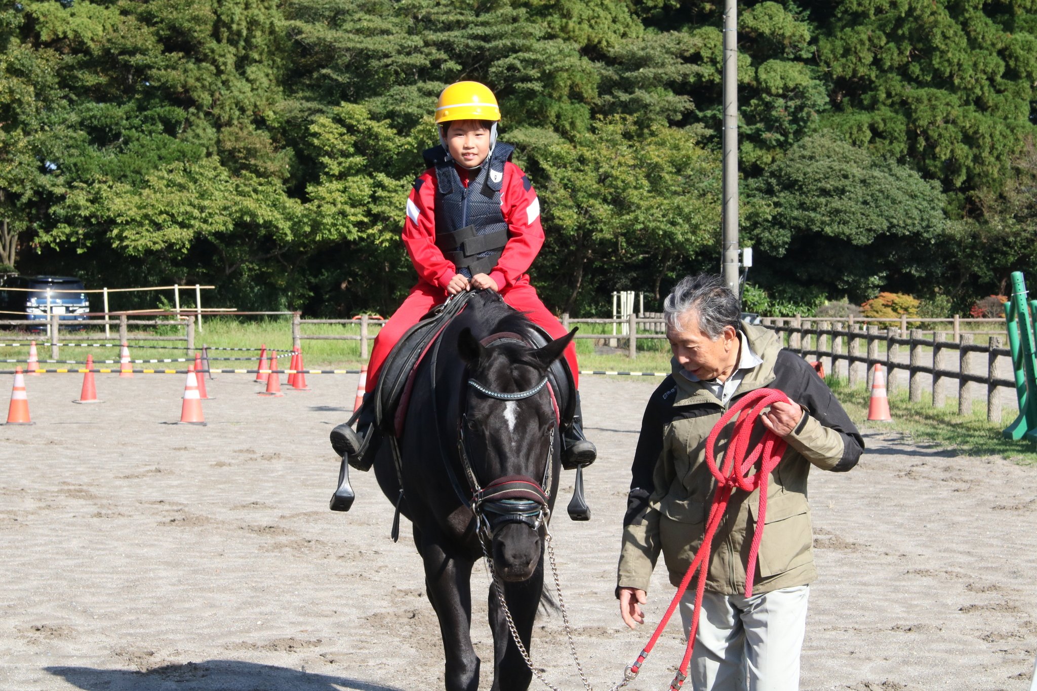 乗馬体験が初めてという2年の関原新さん(7)は「最初は緊張したけど乗ったら結構平気だった。気持ち良かった。馬もかわいい」と笑顔を見せた。