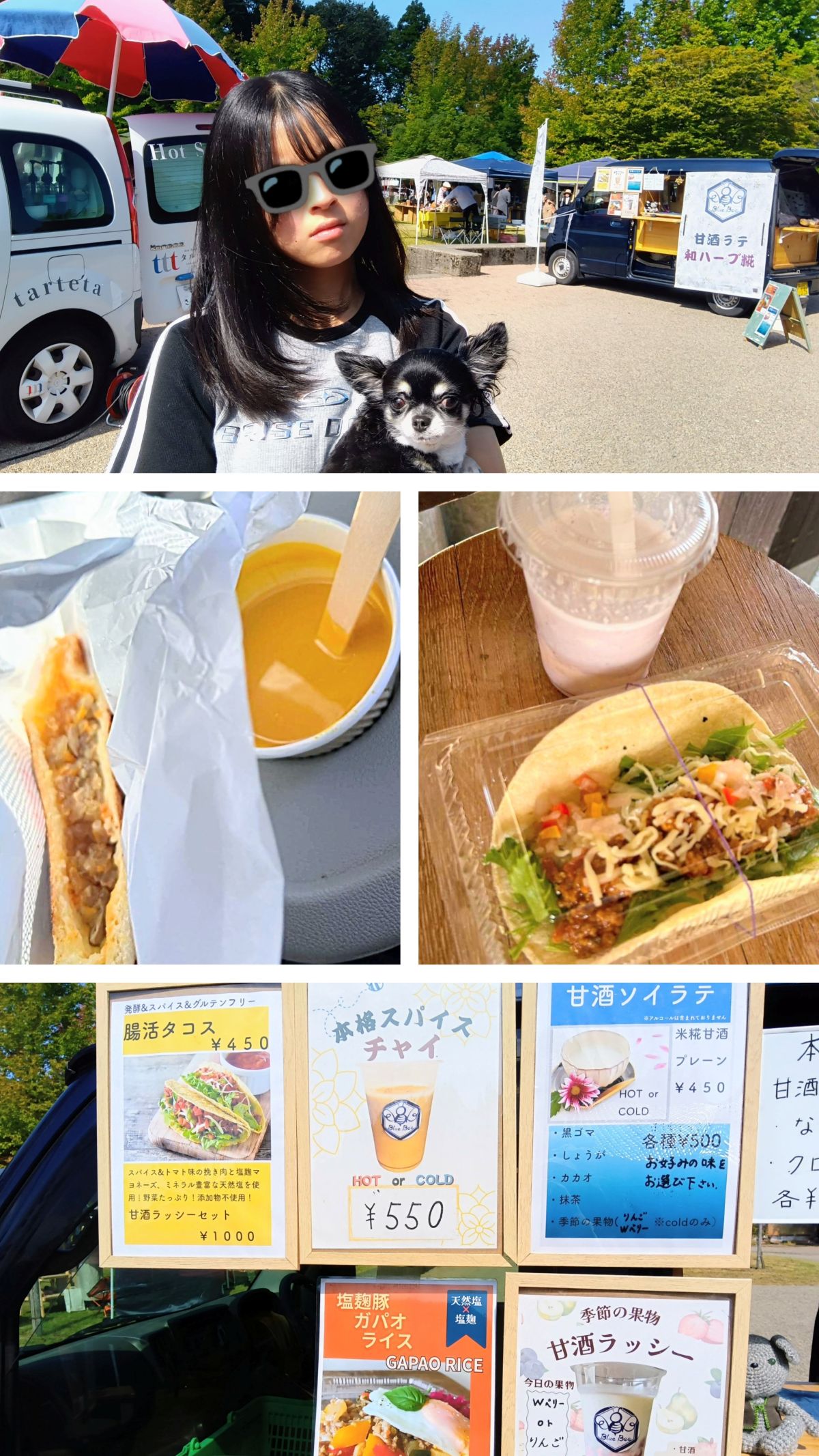 先日の「ご自愛デー」で腸活に触れたばかりの私は、【腸活タコス&甘酒ラッシー】をチョイス😆娘は【チャプチェホットサンド&カボチャスープ】、ワンコは持参した【さつま芋&富山のおいしい水】でした。